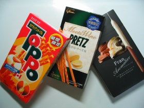 そしてポッキーなんだが、私はチョコの層の厚いのが好きなのでポッキーではなくフランを買い、更に期間限定のメープル風味チョコのトッポも購入。