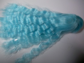 水色のウェーブヘアのドールウィッグにお湯パーマをかけ、ストレートにしたまではよかったのだが…