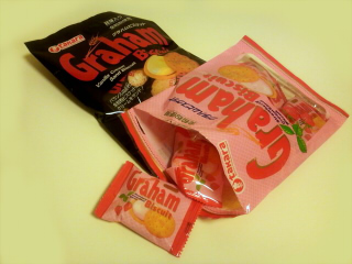 以前買ったのは大袋入りのアソート『グラハムスリー』で、バニラ・ピーナッツ・チョコレートのそれぞれクリームがサンドされていたわけだが、これに4番目のフレーバーがある事を知り、以来探していた。