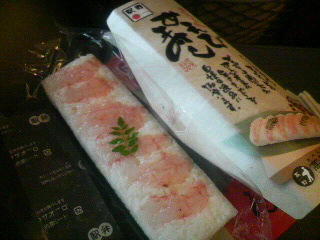 押し寿司の至高は富山の鱒の寿司だと思ってますが、基本的に押し寿司という食べ物は好きなので食指が動いた。