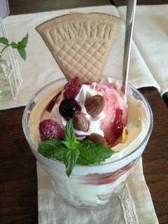 頼んだパフェは、最近食べた甘味の中で一番彩りが良くて綺麗だった。味が普通なのに、見た目からの好感触のお陰でより美味しく感じる。