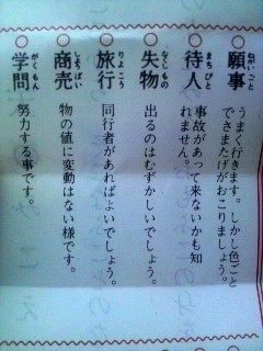 あと『失物…出で難し』『転居…控えよ』前回名古屋に行った時に買ったサンストーンとかセレナイトの小石、引越しのドサクサでどっかやっちゃったんだよな…捨てた筈はないから、探してない時にポンと出てくるんだろうけど。