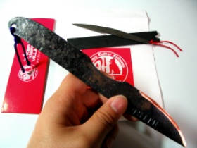 この『タケフナイフビレッジ』では手軽な打刃物の体験教室をやっていて(要予約)私達はペーパーナイフを作る事にしたのですよ。