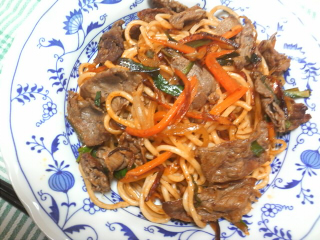 あと、ボリューム出そうと思って牛こま肉ブチ込んだから。これがウインナーソーセージの切ったやつとかベーコンだったなら、ちゃんとナポリタンっぽかった筈…!!