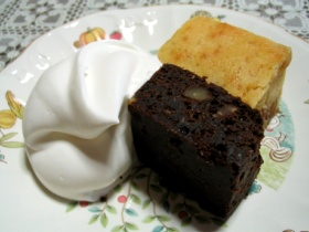 写真奥のホワイティー(仮称)は、このブラウニーの材料1、チョコレートをホワイトチョコに。