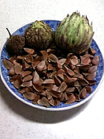 ブナの実は、手で外皮をペキンとむしってそのままモシャモシャ食べる。
